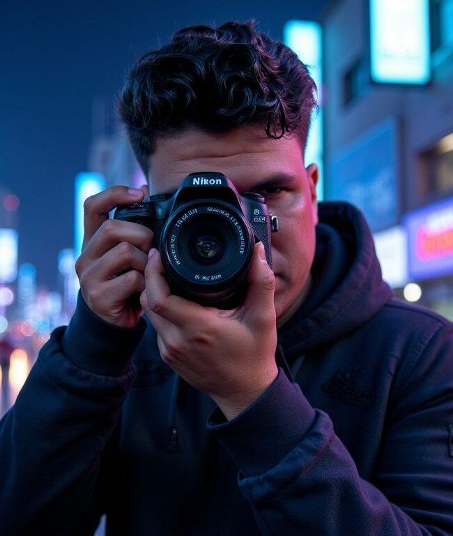 Cada prompt deve conter especificações fotográficas completas, incluindo modelo da câmera, tipo de lente, tipo de filme, configuração de luz e estilo de composição, seguindo os mais altos padrões profissionais. As informações técnicas da câmera devem ser escritas diretamente na descrição, por exemplo: “captured with a Nikon D850 and a 105mm f/2.8 macro lens, using Fujifilm Provia 100F film”.